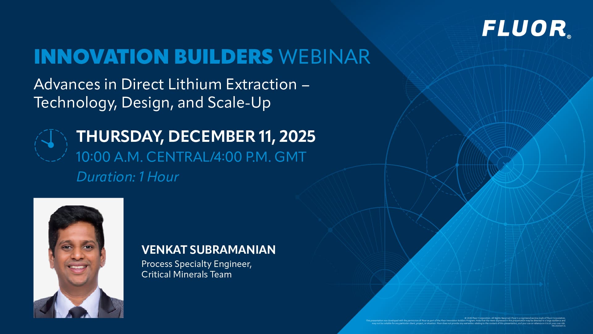 In this webinar, Venkat Subramanian, a member of Fluor’s Critical Minerals team, will explore:
